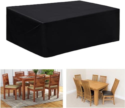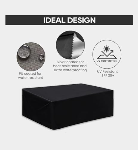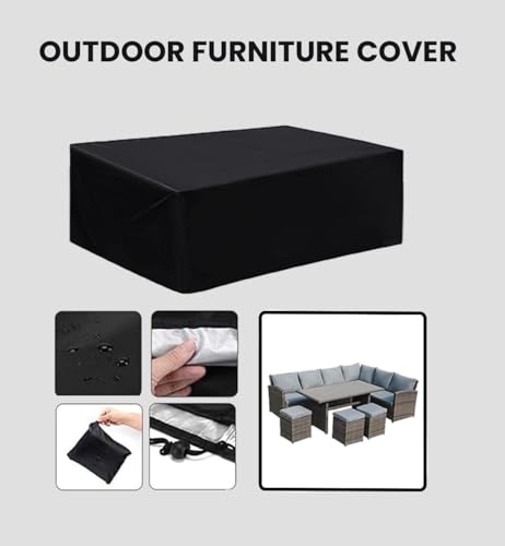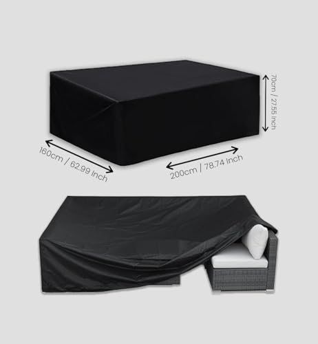 OctStory - طقم اثاث فناء كبير جدًا، غطاء طاولة مستطيل شديد التحمل 210D للاستخدام الخارجي، غطاء مجموعة مقسم للعشب مضاد للبهتان ومقاوم للرياح العالية ومضاد للاشعة فوق البنفسجية (اسود) (200 × 160 × 70 سم)