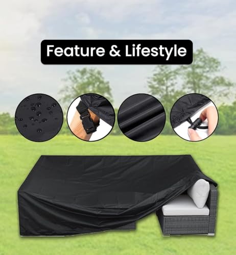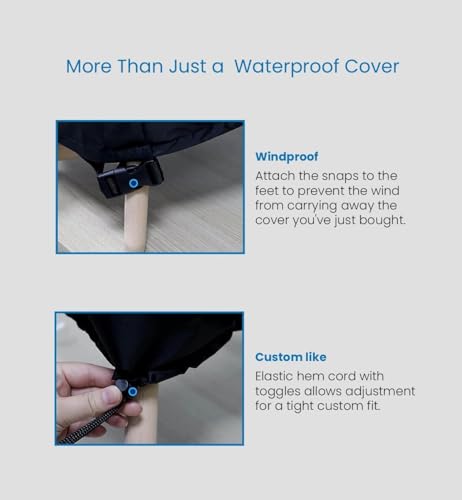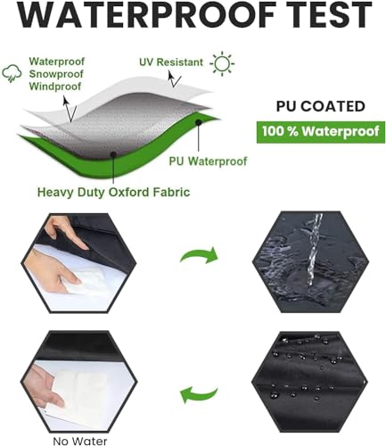- 【مادة شديدة التحمل ومقاومة للماء】- مصنوع من قماش اوكسفورد المبطن بالبولي يوريثان 210D، غطاء الأثاث شديد التحمل هذا مقاوم للماء ومقاوم للأشعة فوق البنفسجية والتمزق والبهتان، يحمي أثاثك بشكل أفضل من البيئات القاسية مثل أشعة الشمس القوية والمطر والثلج والغبار وأكثر من ذلك.