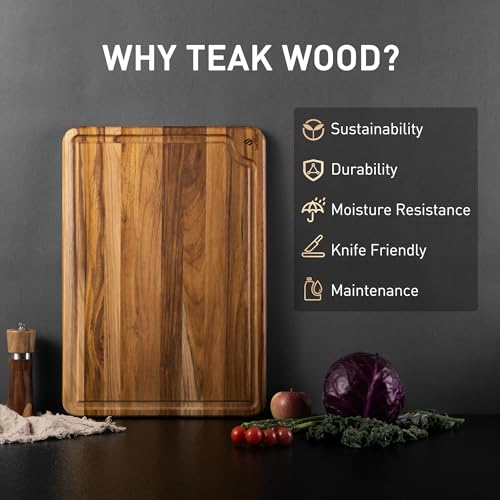 - لوح تقطيع من خشب الساج بحجم كبير جدًا XXL للمطبخ: لوح تقطيع خشب الساج بطول 50.8 سم مثالي لمهام المطبخ واسعة النطاق. سواء كنت تقوم بتقطيع قطعة لحم مشوية كبيرة، أو تقطيع كمية كبيرة من الخضروات لحفلة، أو تحضير لوح تشاركوتيري للضيوف، فإن هذا اللوح يتمتع بمساحة واسعة للتعامل مع كل ذلك. لا غنى عنه لأولئك الذين يحبون الطبخ بكميات كبيرة.