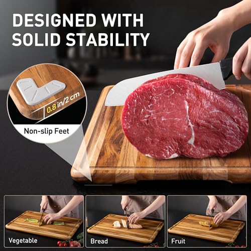 Socisen - لوح تقطيع خشب الساج كبير للغاية، للمطبخ، بأقدام غير قابلة للانزلاق فوق الحوض، لوح تقطيع جزار سميك ومتين من الخشب، مع مجرى للعصير، أحجام كبيرة Xl و XXl، خشب صلب عضوي لسطح المطبخ، مقاس 50.8 سم