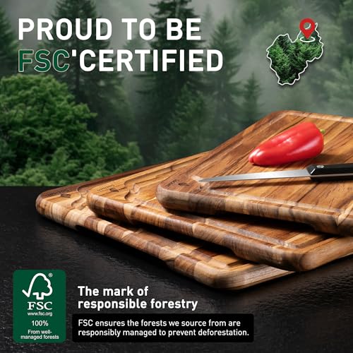 - تصميم استثنائي غير قابل للانزلاق وحرفية فائقة: تأتي مجموعة لوح التقطيع المصنوع من خشب الساج المعتمد من مجلس رعاية الغابات مع قاعدة غير قابلة للانزلاق، مما يضمن ثباتها على أي سطح عمل. خشب الساج المعتمد من مجلس رعاية الغابات مصنوع بعناية بحواف دائرية لقبضة مريحة، ويحافظ هيكله على الشكل والتسطح بمرور الوقت. تعد ألواح التقطيع المصنوعة من خشب الساج للمطبخ مزيجًا من العملية والأناقة، وهي مثالية لجميع احتياجات التقطيع في مطبخك.