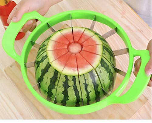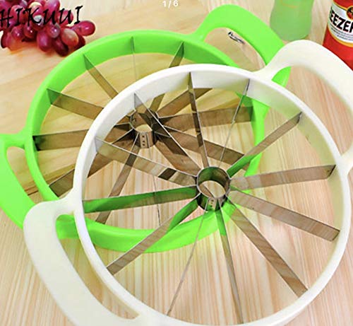 - 🍉المقاس المرجعي:: 11 بوصة/28 سم، الارتفاع مع المقبض: 2.4 بوصة/6 سم. الحجم كبير بما يكفي لكل بطيخة تقريبًا! لا داعي للقلق من مشكلة المقاس. فهي لا يمكن أن تقطع الفاكهة فقط ولكن يمكنها أيضا تقطيع الخبز والفطائر والبيتزا والعديد من أنواع الخضروات