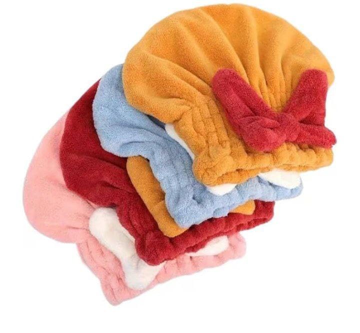 Generic - قبعة منشفة شعر سميكة للغاية مع فيونكة - عمامة شعر من المايكروفايبر عالية الامتصاص، حجم كبير للشعر الطويل، لفافة شعر ناعمة قابلة لاعادة الاستخدام (قطعتان)