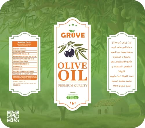 - زيت زيتون بكر ممتاز: منتج طبيعي عالي الجودة من علامة جروف بسعة 750 مل