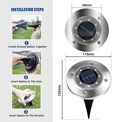 - كفاءة الطاقة الشمسية: مزود ببطارية قابلة لإعادة الشحن 600 مللي أمبير، كل مصباح أرضي يعمل بالطاقة الشمسية مع 8 مصابيح LED قادر على الإضاءة لمدة 8 ساعات تقريبًا في الليل بعد شحنه بالكامل بواسطة 6-8 ساعات من الطاقة الشمسية خلال النهار، مما يوفر جوًا وبيئة دافئة. اقتصادية وصديقة للبيئة. لذلك لا تقلق بشأن فواتير الكهرباء على الإطلاق.