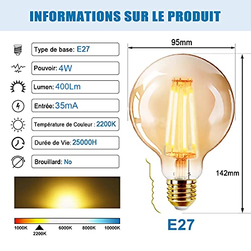 - مصابيح LED - موديل G95 مع مقبس E27 ومينا شفاف يظهر خيوط LED مما يمنحه نمطًا كلاسيكيًا مثاليًا لجميع أنواع البيئات..