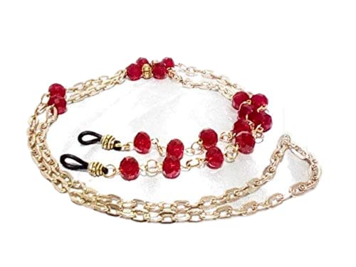Other - سلسلة نظارة من الكريستال الاحمر وسلسلة معدنية ذهبى