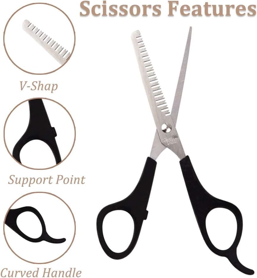 Generic - مقص تشذيب الحواجب والشعر مع مشط - اداة تشكيل الحواجب وقص الشعر من الستانلس ستيل، متينة وحادة ودقيقة - مجموعة حلاقة للنساء والرجال، للاستخدام في صالونات التجميل والمنزل (عبوتان)