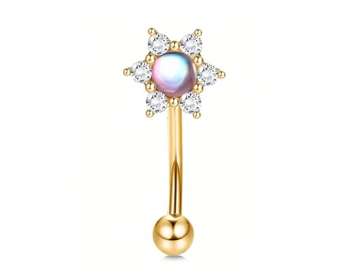 BIJOUX BEAUTIQUE - مجوهرات بيرسينج على شكل زهرة اورورا من الاحجار الكريمة المنحنية للحواجب/الاذن - ذهبي
