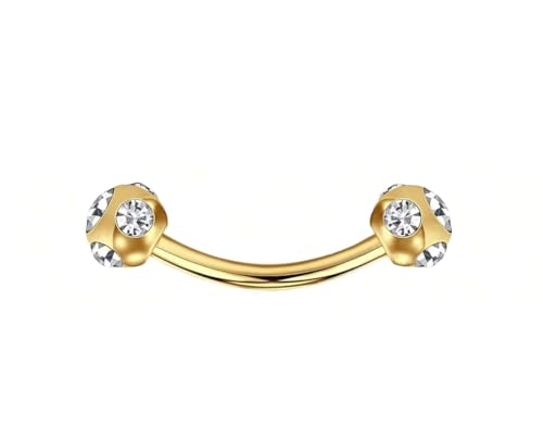 BIJOUX BEAUTIQUE - مجوهرات بيرسينج على شكل قضيب منحني مرصع باحجار كريمة للحواجب/الاذن - ابيض، ذهبي