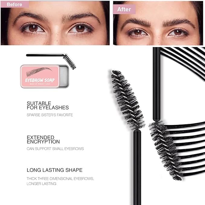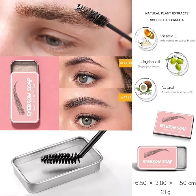 - جل الحواجب: صابون الحواجب هو منتج تصفيف شفاف يضيف سماكة وكثافة وملمس إلى حواجبك عند تمشيطه عبر حواجبك الطبيعية. يمنحك صابون تشكيل الحواجب وايلد حواجب ورموش سميكة وجميلة بشكل طبيعي. مثالية لتصفيف الحواجب، لترويض الحواجب الجامحة وتحسين لون الحواجب. امنح وجهك مزيدًا من الوضوح، والاختيار الأمثل لكريمات تلوين الحواجب.