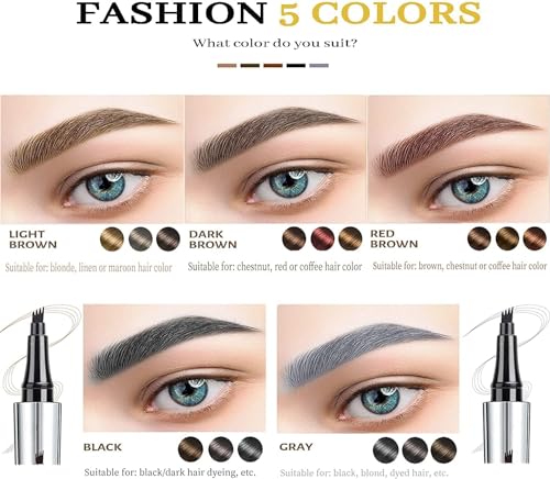 Generic - قلم تحديد الحواجب للحصول على حواجب مايكرو بليدينج، قلم تاتو بـ 4 نقاط لحواجب طبيعية بخطوط دقيقة وممتلئة، مقاوم للمياه يدوم طويلا لمحبي الجمال (رمادي)