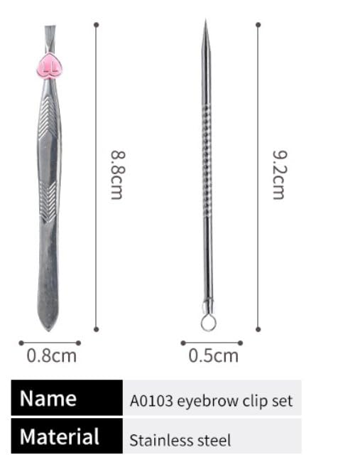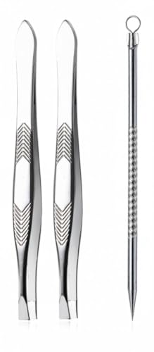 Generic - مجموعة ادوات تجميل بمشبك لنتف الحواجب، ادوات تجميل وملقط حواجب شخصي وابر حب الشباب - 3 قطع - فضي