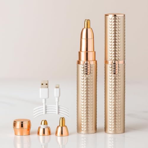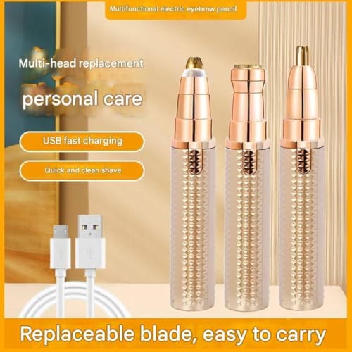 ZECIER - ماكينة تشذيب الحواجب للنساء 3 في 1 قابلة لاعادة الشحن مع رؤوس قابلة للاستبدال، ماكينة حلاقة احترافية لازالة الشعر الشخصي بدون الم مع اضواء مؤشر (ذهبي)