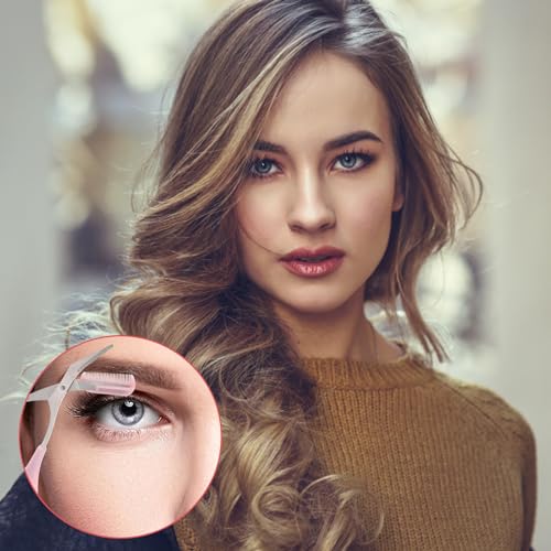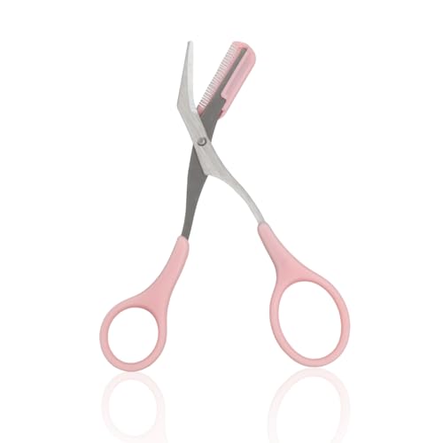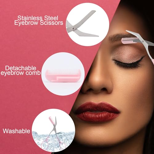 Elitecran - مقص تشذيب الحواجب للنساء مع مشط، قص شعر الرموش، أداة تشكيل الحواجب من الفولاذ مقاوم للصدأ، مقص حواجب دقيق، أداة تجميل صغيرة قابلة للفصل للحواجب للرجال والنساء