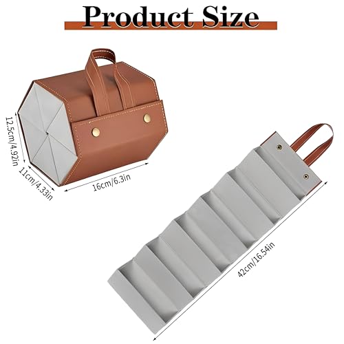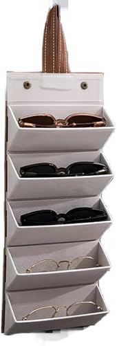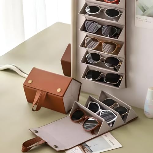 Generic - صندوق تخزين النظارات - منظم أنيق من جلد البولي يوريثين البني مع 6 مساحات معلقة، مصمم للنظارات الشمسية والنظارات والاغراض الشخصية الصغيرة.