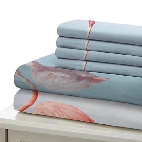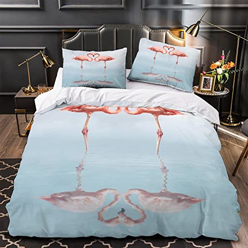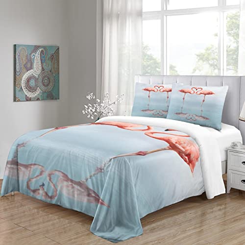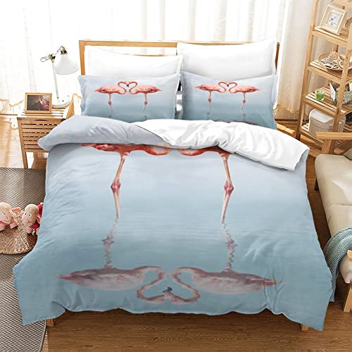 EYITASTE - طقم سرير مطبوع عليه فلامنجو غطاء لحاف من المايكروفايبر لا يسبب الحساسية مع سحاب للاغلاق طقم سرير للاولاد والبنات مقاس كينج 220 × 240 سم من اييتاست كتان