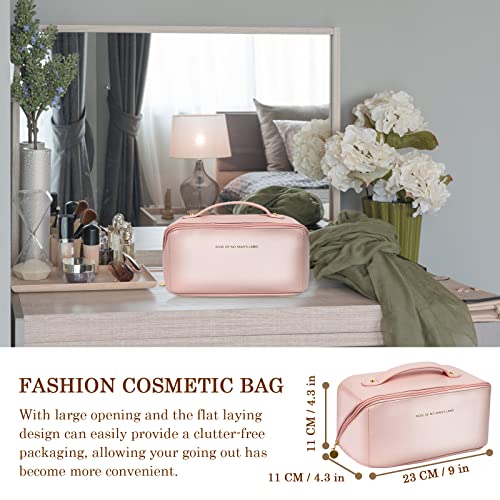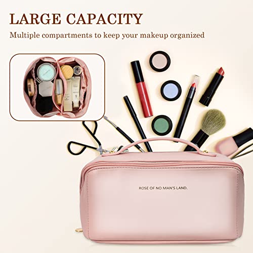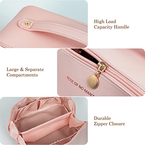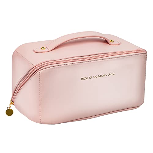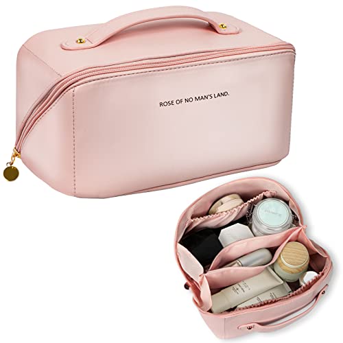 EYSCOTA - شنطة مستحضرات تجميل للسفر بسعة كبيرة شنط مكياج مقاومة للماء مع مقبض جلدية محمولة - هدية للنساء والفتيات زهري مقاس واحد من ايسكوتا