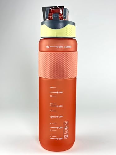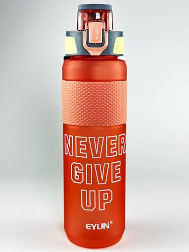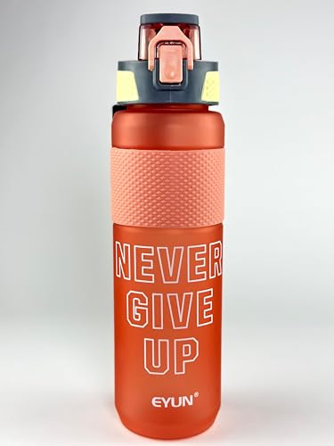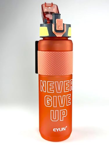 Generic - زجاجة مياه رياضية للحفاظ على درجة حرارة السوائل، زجاجة مياه، مانعة للتسرب، بعبارةNever Give Up، للمكتب وصالة الجيم وممارسة الرياضات الخارجية، 1 لتر من ايون (برتقالي ورمادي)