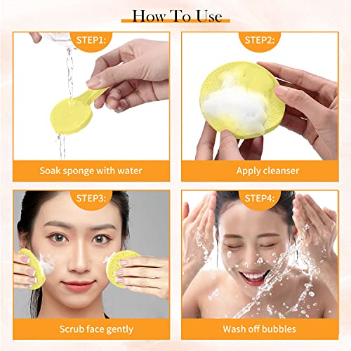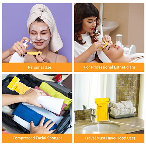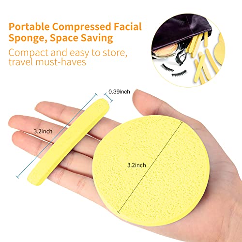 eyxformula - اسفنجات تنظيف الوجه للتنظيف، 48 قطعة من اسفنجات الوجه المضغوطة، اسفنجة دائرية لتنظيف الوجه، اسفنجة وجه قابلة لاعادة الاستخدام، وسادات ازالة المكياج، مستلزمات سبا تجميل محمولة للوجه، أصفر