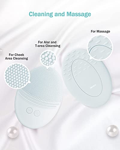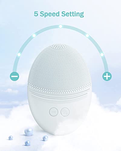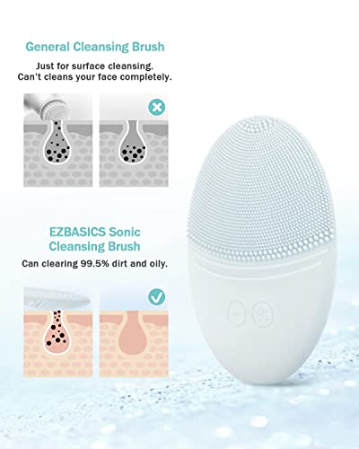 EZBASICS - فرشاة تنظيف الوجه مصنوعة من سيليكون فائق النعومة وصحي للغاية، فرشاة وجه سونيك مقاومة للماء تعمل بالاهتزاز لتنظيف المسام بعمق وتقشير البشرة بلطف وتدليكها مع شحن حثي، رمادي فاتح