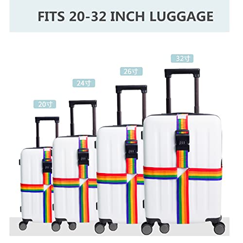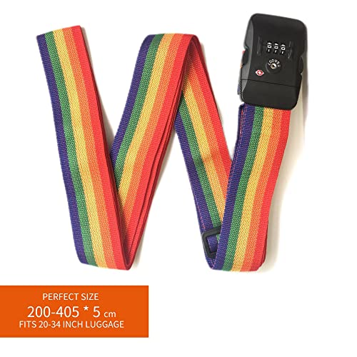 EZON - حزام متقاطع لشنط السفر معتمد من إدارة أمن النقل قابل للتعديل مع قفل بثلاثة أقراص يناسب الشنط مقاس 50-86 سم،(ألوان قوس قزح)