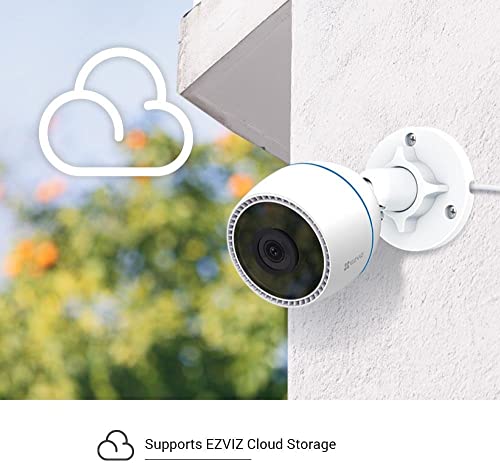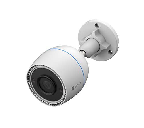 EZVIZ - كاميرا مراقبة سي 3 تي ان 1080 بيكسل من ايزفيز/مع خاصية رؤية ليلية بالألوان ونظام سي سي تي في وواي فاي وتقنية كشف الحركة ومقاومة للماء IP67 وبطاقة SD (حتي 256 جيجابايت)/متوافق مع اليكسا وجوجل هوم-أبيض