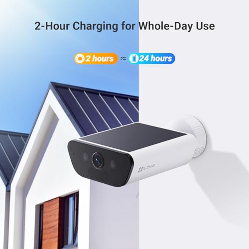 EZVIZ - كاميرا مراقبة CB5 تعمل بالطاقة الشمسية بدقة 4K مع لوحة خلايا شمسية مدمجة، تسجيل 24/7، كاميرا واي فاي خارجية، كاميرات سي سي تي في، رؤية ليلية ملونة، كشف البشر والمركبات وصوت ثنائي الاتجاه من ايزفيز