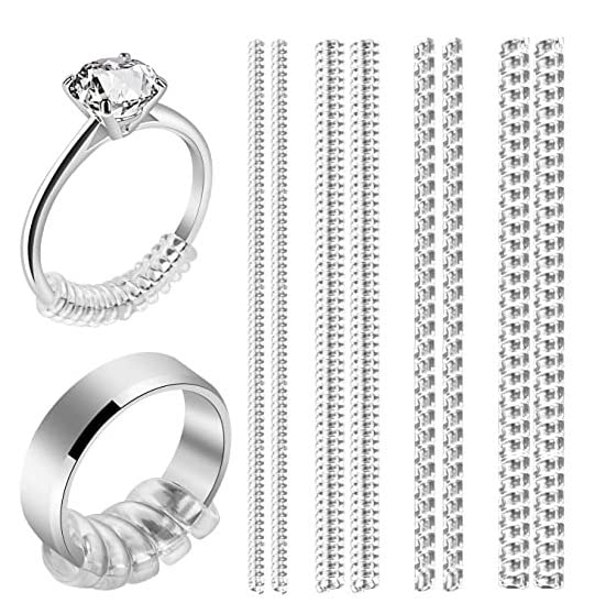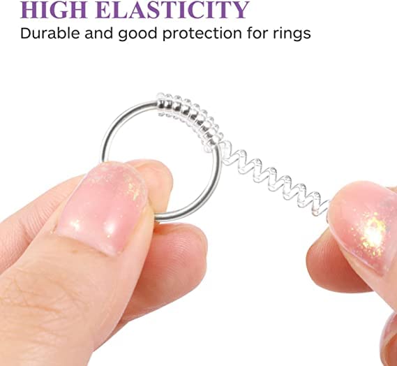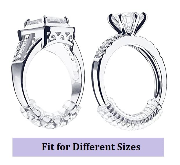 F Falkiya - 8 قطع من واقيات الخواتم المصنوعة من السيليكون الشفاف من اف فالكيا، حلقات غير مرئية لضبط مقاسات الخواتم | حلقة قابلة لاعادة الاستخدام من السيليكون الحلزوني للجنسين (شفاف) (4 مقاسات)، سيليكون