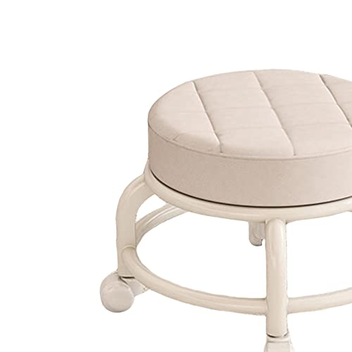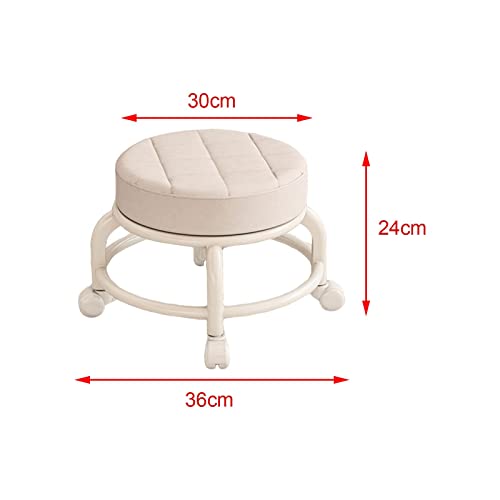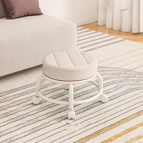 F Fityle - مقعد بعجلات من إف فيتالي، كرسي باديكير دائري منخفض بعجلات دوارة عالمية كرسي صغير مريح للمكتب، أبيض