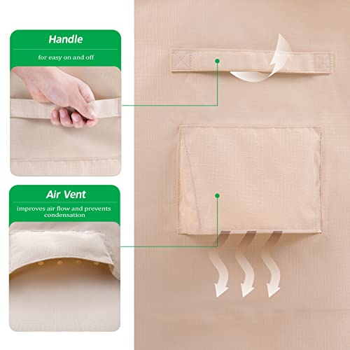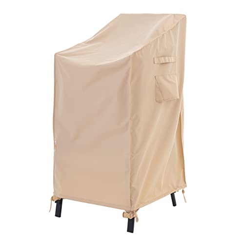 F&J Outdoors - أغطية كراسي قابلة للتكديس من اف اند جيه اوتدورز مقاومة للماء والأشعة فوق البنفسجية شديدة التحمل بظهر مرتفع لعدد 4 كراسي، مقاس 27 بوصة عرض × 34 بوصة عمق × 41 بوصة ارتفاع، قماش، بيج