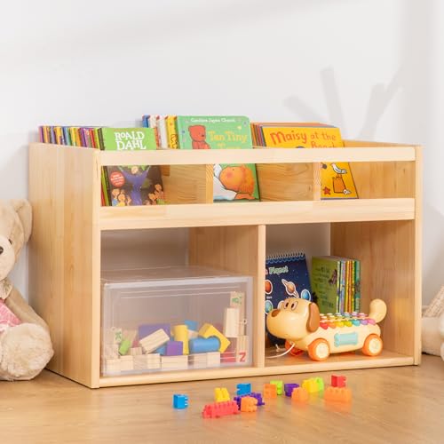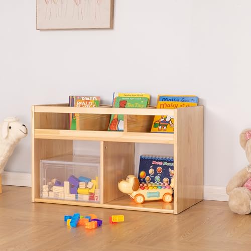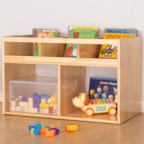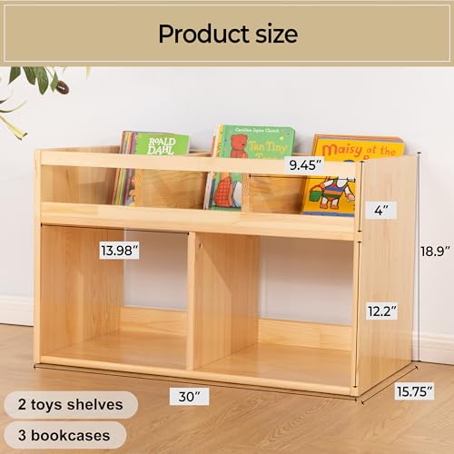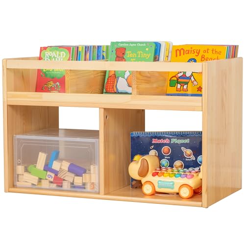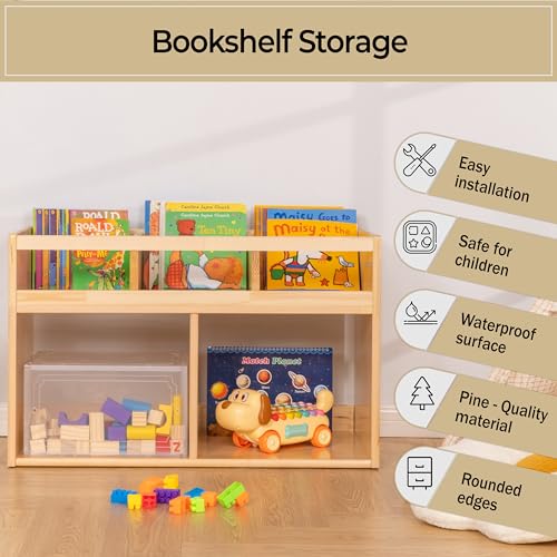 - رف كتب مونتيسوري لتخزين الالعاب من اف 3 سي - رف كتب للاطفال مكون من 3 اقسام لتنظيم الكتب - منظم العاب برفين وخزانة تخزين - خزانة كتب من الخشب الطبيعي مع مساحة تخزين - منظم للاطفال - 2