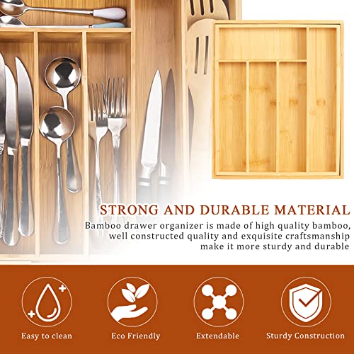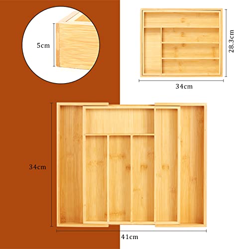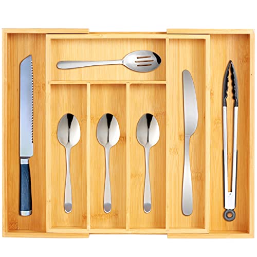 Faankiton - منظم ادراج وادوات تناول الطعام من فانكيتون لادراج الخيزران، درج قابل للتعديل مع 5 الى 7 مقصورات، الحد الأقصى لحجم التمديد: 41 سم × 34 سم × 5 سم (الطول × العرض × الارتفاع)