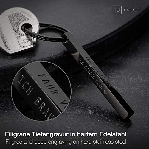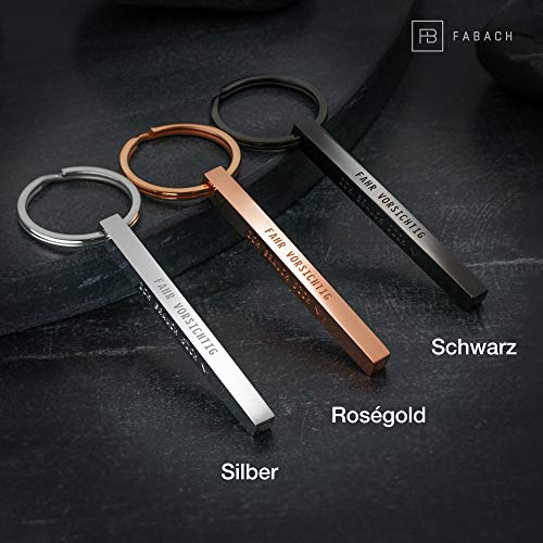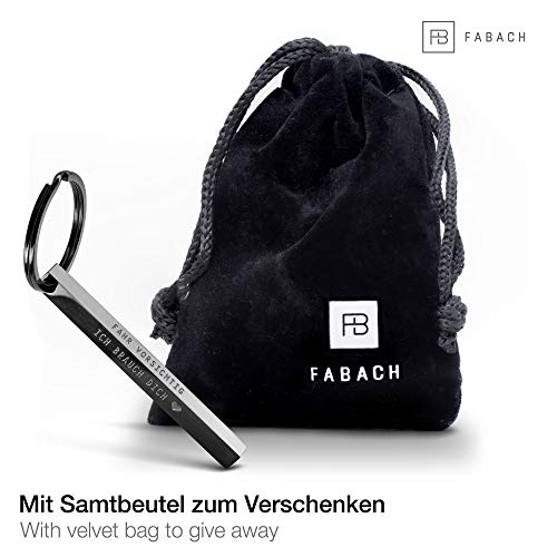 FABACH - FABACH Cuboid Keyring "Fahr vorsichtig ich braucht dich - Quader Auto Keyring Made of Stainless Steel - Stick Pendant with Deep Filigree Engraving Drive Carefully