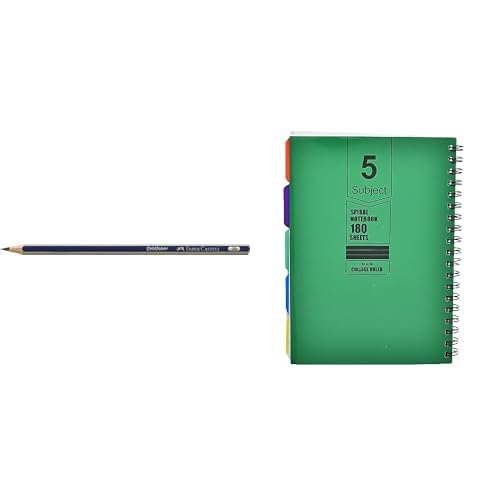Faber-Castell - مجموعة أدوات مكتبية من فابر كاستل: كشكول بسلك حلزوني مكون من 5 مواضيع مقاس B5 من المعايرجي + قلم جرافيت 3B من جولد فابر