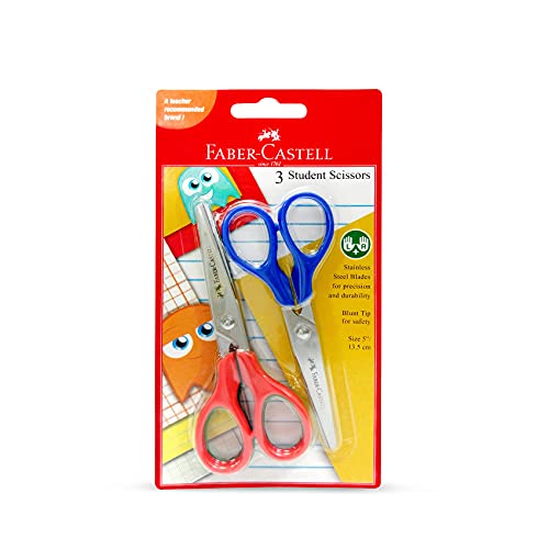 Faber-Castell - مقص طلاب من فيبر كاسل مكون من 3 قطع 5 بوصات مغلف ببليستر