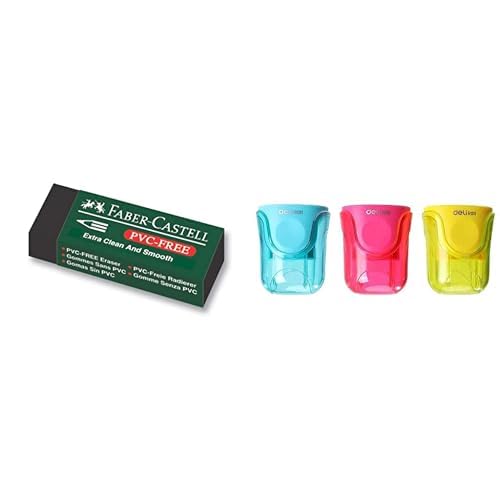 Faber-Castell - مجموعة المستلزمات المدرسية من فابر-كاستل (أستيكة، لون أسود، 120245 + براية أقلام رصاص للمستلزمات المدرسية من ديلي - متنوعة)