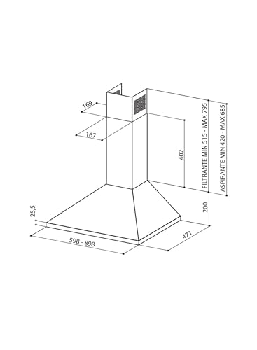 Faber - شفاط بوتاجاز مطبخ PB BK A90 يثبت على الحائط 90 سم، من الفولاذ المقاوم للصدأ بقوة شفط 380 م³/س، بـ3 سرعات وإضاءة ليد من فابر، أسود، موديل PB BK A90 صنع في ايطاليا