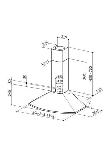 Faber - شفاط بوتاجاز مطبخ مثبت على الحائط تيندر TENDER X A90 من الفولاذ المقاوم للصدأ بقوة شفط 400 م³/س، بـ3 سرعات وإضاءة ليد، صنع في إيطاليا من فابر، أسود، 90 سم