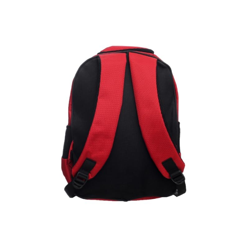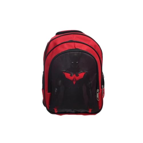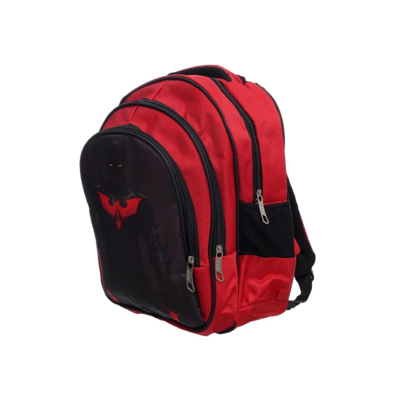 Generic - شنطة ظهر قماشية كبيرة، بتصميم مقسم إلى ثلاث جيوب بسوستة وجيوب جانبية عميقة، مع طبعة شخصيات كرتونية لطيفة، مصممة خصيصًا للطلاب، أحمر وأسود