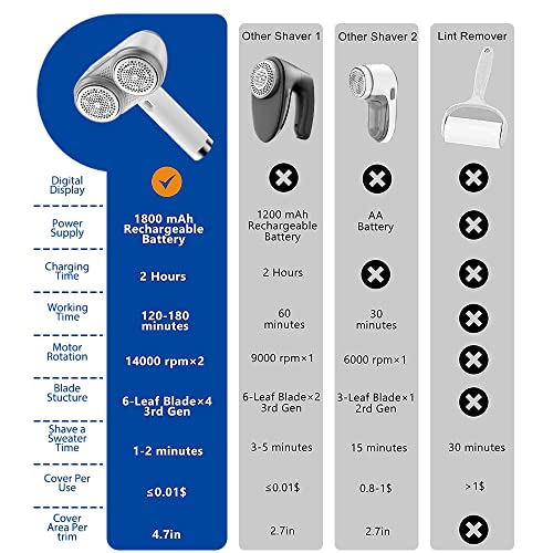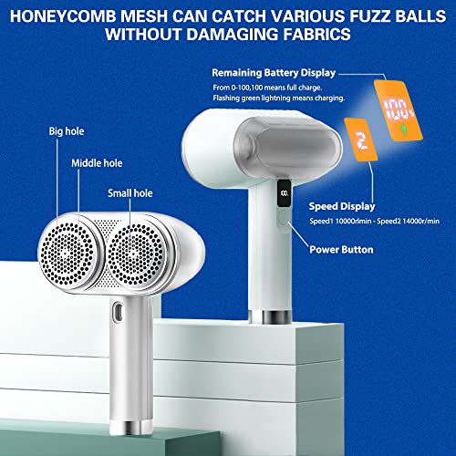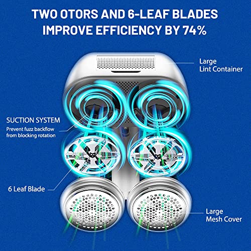 - [ابتكار فعال] - مع محركين عالي السرعة 14000 دورة في الدقيقة، يمكن أن يساعدك مزيل الوبر الكهربائي هذا على التخلص من كل جزء من الفرو ويضفي على ملابسك مظهرًا جديدًا لبضع دقائق فقط دون الحاجة إلى تنظيف نفس المنطقة مرة أخرى. تتميز ماكينة تنظيف القماش بتغطية أكبر 12 سم، و3 أحجام من فتحات الحلاقة، وشفرات 4 × 6 أوراق، والتي يمكنها إزالة الكرات الزغبية بأحجام مختلفة دون إتلاف سطح القماش. تحسين كفاءة العمل بنسبة 74%.