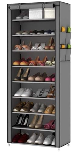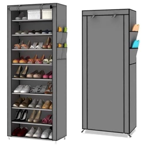 Other - خزانة أحذية جزامة من القماش بعدد 9 رفوف، رمادي