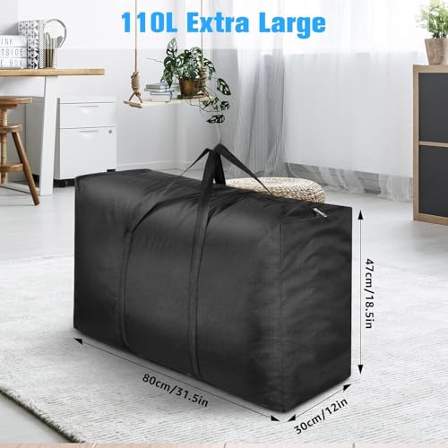 Generic - شنط قماشية قوية للتخزين مع سوست، صندوق تخزين تحت السرير مع غطاء للحاف والبطانيات والغسيل سعة 110 لتر، مجموعة من 4 قطع - أسود