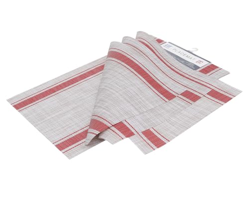Generic - طقم مفارش طاولة قماشي مقاس 45 × 30 سم، 4 قطع بيج وأحمر