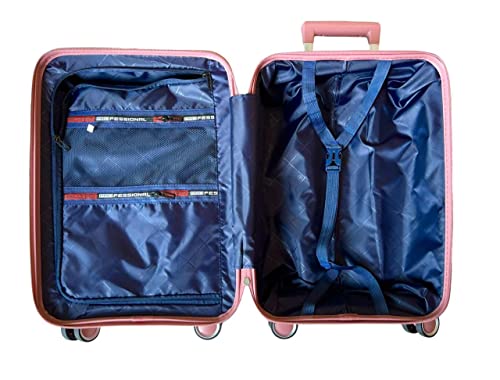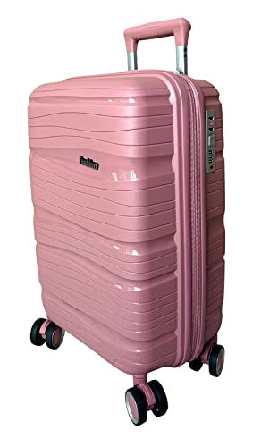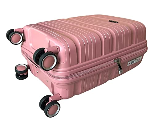 Fabrik - فابريك حقيبة سفر بجوانب صلبة، حقيبة سفر بعجلات خفيفة الوزن للغاية مع 4 عجلات دوارة، لون ذهبي وردي، مقاس 28 انش