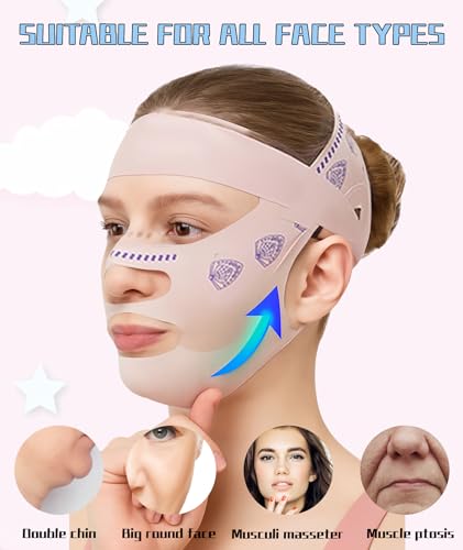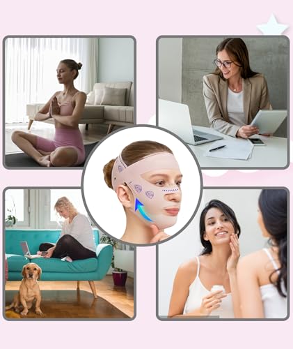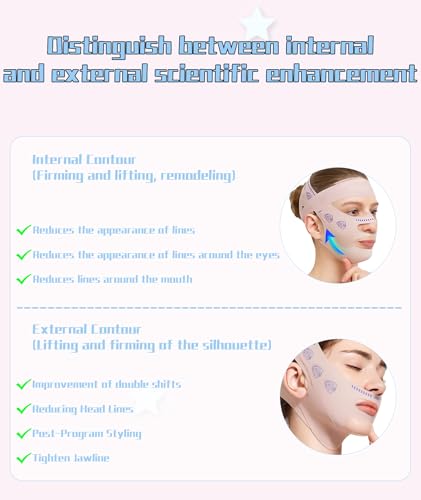 - قناع تخفيف الذقن المزدوجة ورفع الذقن المزدوجة: قناع رأس ضغط مطبوع باللون الوردي مع مخفض الذقن المزدوج وقناع رفع الذقن المزدوج - قناع رأس ضغط أنيق مطبوع باللون الوردي. تستخدم أداة تنحيف الوجه هذه ضغطًا لطيفًا لرفع منطقة الذقن المزدوجة أثناء تشكيل ملامح الوجه. مثالي للاستخدام اليومي، إنه حل للحصول على مظهر أكثر تناسقًا وشبابًا.