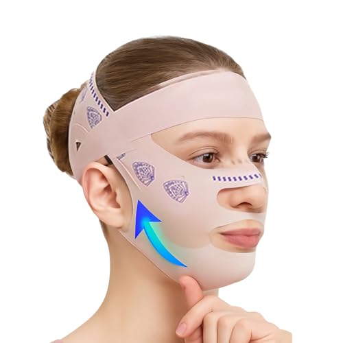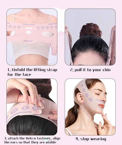 NHCDFA - قناع شد الوجه لتخفيف الذقن المزدوجة، قناع رفع الذقن المزدوج للنوم ورفع الوجه والفك، قناع رفع قابل لاعادة الاستخدام، لون بينك