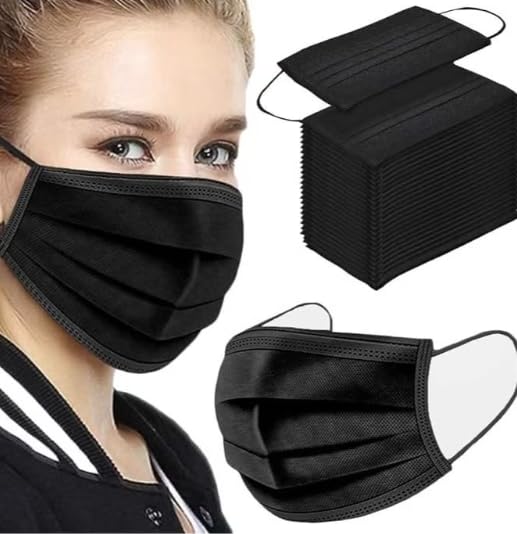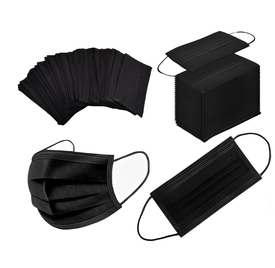 Portal Tools - كمامات وجه سوداء بالكامل، كل قطعة مغلفة في عبوة منفصلة - 50 قطع