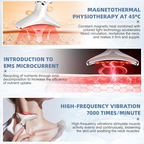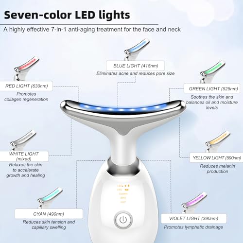 - 【7 مصابيح LED ملونة】 بالإضافة إلى التبديل بين أوضاع التدليك الثلاثة لمدلك الرقبة الكهربائي، ينتج جهاز تدليك الوجه أيضًا 7 مصابيح LED ملونة لتتناسب مع تدليك الوجه والرقبة: ضوء أحمر مضاد للشيخوخة، ضوء أزرق لتخفيف الالتهاب، ضوء أخضر لإزالة التجاعيد، ضوء أرجواني لإزالة السموم من البشرة، ضوء أصفر لتلاشي، ضوء أزرق فاتح لتخفيف توتر البشرة، ضوء أبيض لاسترخاء البشرة