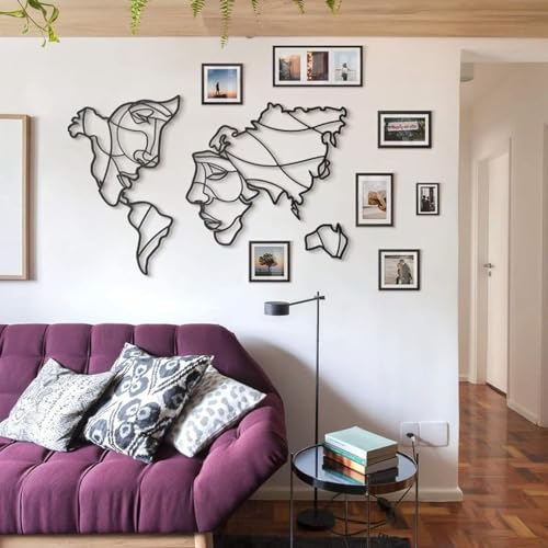 Generic - ديكور منزلي بتصميم خريطة وجه العالم مقاس 50×32 سم لون اسود WQ.WA228.19